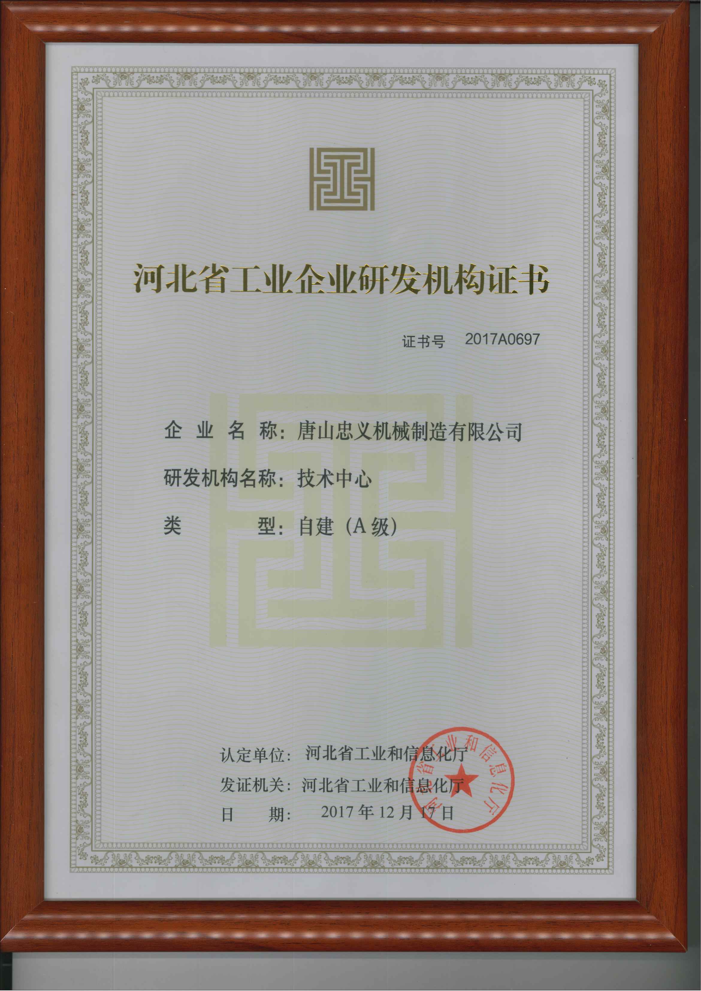 河北省工業(yè)企業(yè)研發(fā)機構(gòu)證書彩色原版 發(fā)布時間:2025-08-18 點擊: 119 上一條: 河北省專精特新中小企業(yè) 下一條: 河北省科技型中小企業(yè)證書(新)